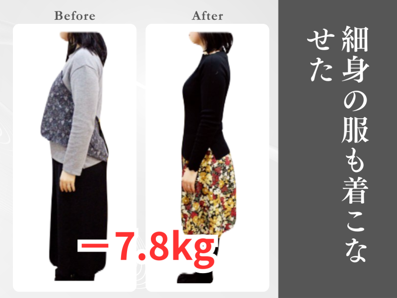 そんなM様が県庁通り整体院のダイエットプログラムに出会い、わずか数ヶ月でマイナス8.3kgの減量に成功。しかも、無理な食事制限や激しい運動なしで、健康的に体重を落とすことができました。